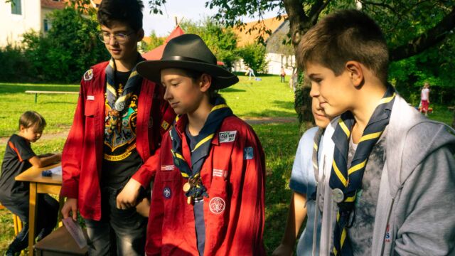 Auch dieses Jahr fand wieder ein G12-Fest statt, und zwar ein Herbstfest mit Startheimstunde. Zu Beginn gab es einen abwechslungsreichen Stationenlauf. Jung und Alt konnte bei einem 1, 2 oder 3 glänzen oder bei einer Rätselstation spannende Aufgaben mit Maßband und Kompass absolvieren. Für alle, die sportlich unterwegs waren, gab es die Möglichkeit, einen Hindernisparcours zu durchlaufen. Natürlich konnte auch die Kreativität ausgelebt werden. Viele aufregende Gesichtsbemalungen waren der Beweis dafür, genauso wie coole Schlüsselanhänger, die aus Leder geschnitten oder aus Perlen und Kastanien gebastelt wurden. Währenddessen bestand für unsere gemütlicheren Gäste die Möglichkeit, sich beim köstlichen Kuchenbuffet zu bedienen, oder sich Chili, Lángos oder einen bunt gemischten Salat zu genehmigen. Dazu gab es natürlich Kaffee, Saft oder – naheliegend für ein Herbstfest – frischen Sturm. Diesen zum Glück aber nur zu trinken, daher konnte angenehm geredet und getratscht werden. Am Abend fanden noch gemeinsame Verleihungen der WiWö und GuSp statt, und auch die Sieger des RaRo-Schätzspiels wurden bekannt gegeben. Vielen Dank an alle, die mitgeholfen haben, dieses Fest zu ermöglichen. Wir freuen uns schon auf ein aufregendes neues Pfadi-Jahr!